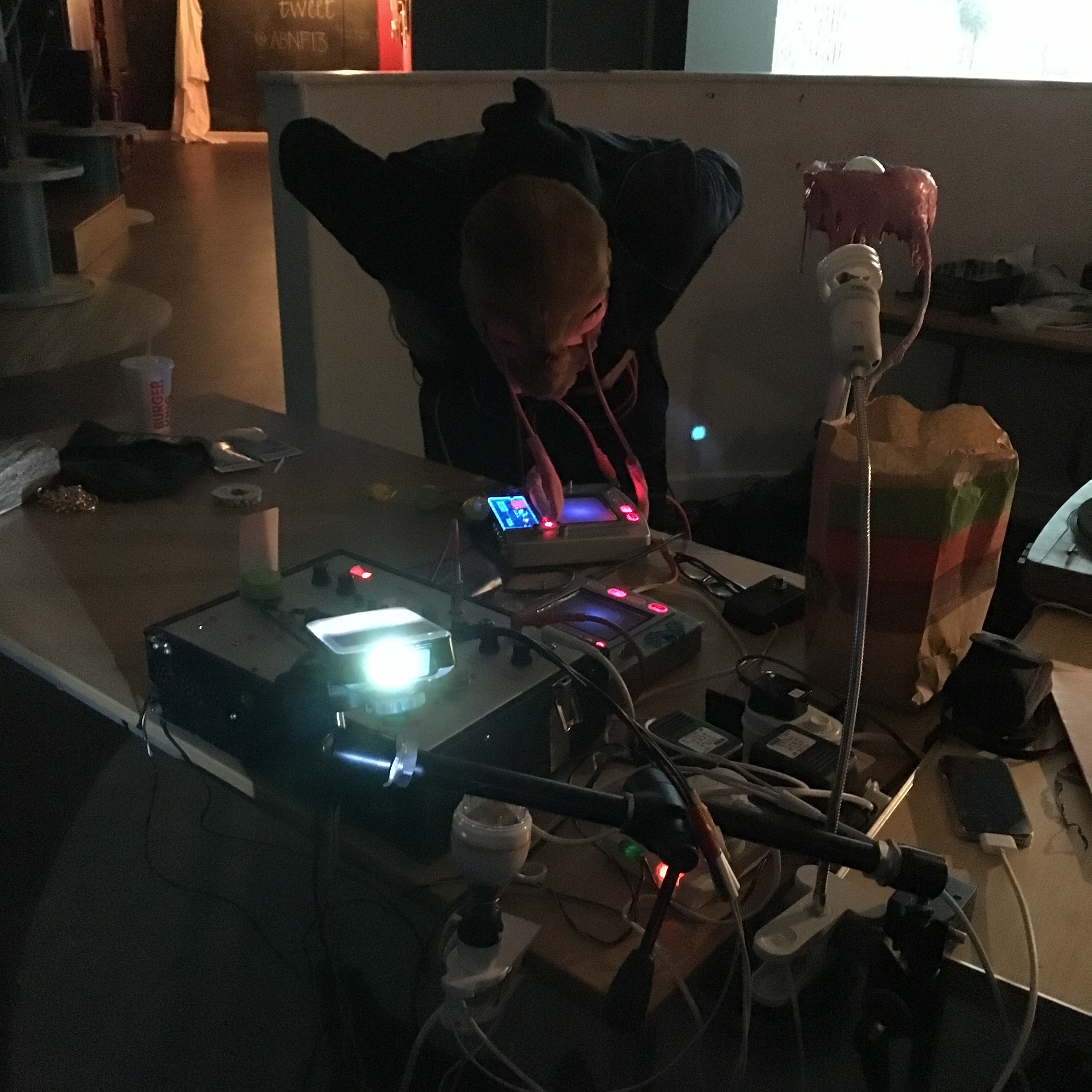 As well as the installations and artworks we offered evil home-brewed refreshments and toasted the event with our special reserve ‘666’ blackberry wine (brewed from 666 blackberries). Live Halloween sounds were created by Jacob Whittaker and his vinyl loops of horror and a new performance from invited artist Ian Watson, a truly terrifying blend of electronic noise, mask and sportswear!