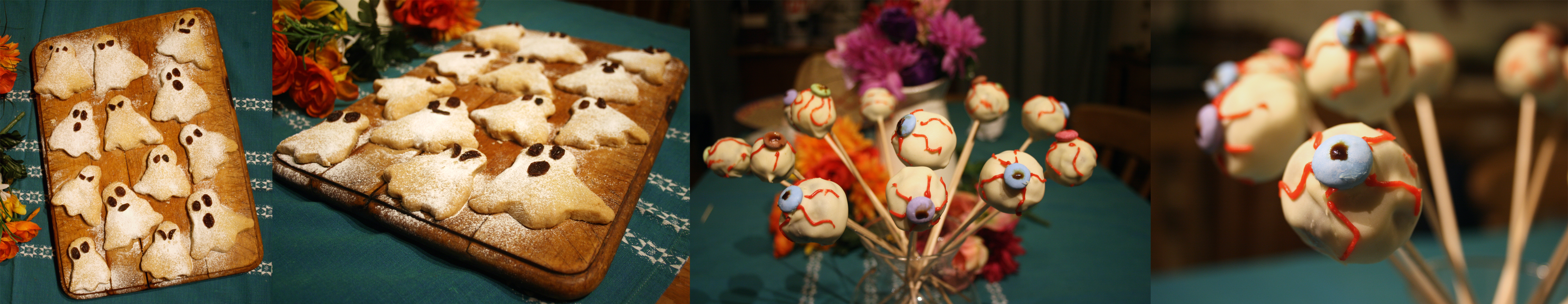 Ghostly Biscuits & Evil Eyes – 13 Sweet vanilla biscuits and 13 chocolate cake balls.